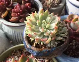 女雏是景天科石莲花属的多肉植物。特征是小巧的株形和橙粉色叶缘。极易生侧芽,…