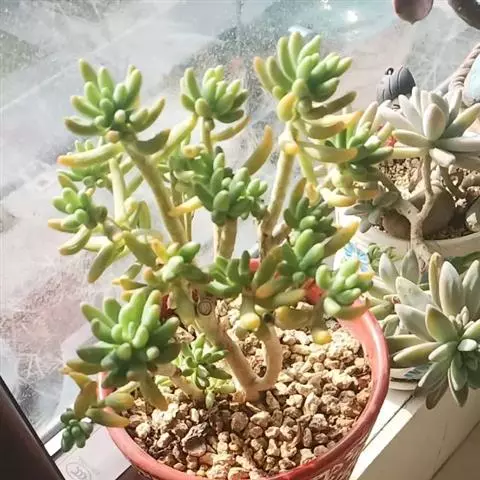 铭月是景天科景天属的多年生亚灌木。多分枝,茎蔓生或直立,高约10-30厘米。…
