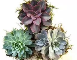 紫珍珠是景天科石莲花属的多年生肉质草本植物。植株中小型;叶片肉质,匙形,呈莲座状紧密排列;叶片粉紫色,…