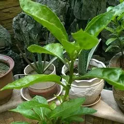 三角榕为常绿乔木或小乔木。叶片近三角形,薄肉质,全缘,长4~6厘米,宽3~5厘米,浓绿色。