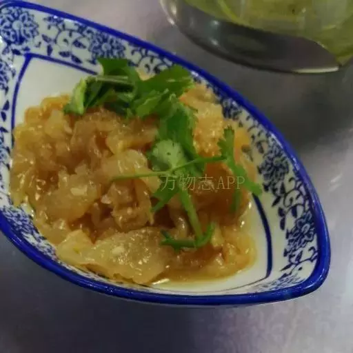 海蜇又名水母,白皮子,主产于中国东南沿海。8~9月间,海蜇常成群浮游于海面,有时被冲击而搁浅在海滩,捕捞时,先用长标刺穿其伞体,然后用网捕获。捕后用石灰、明矾浸制。再榨去其体中水分,洗净,盐渍。一般伞体部和口腕部分开加工,口腕部俗称“海蜇头”,伞部俗称“海蜇皮” [1-2] 。