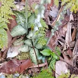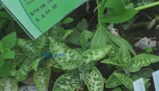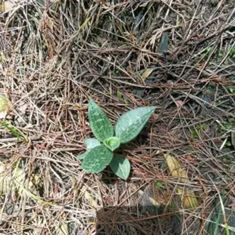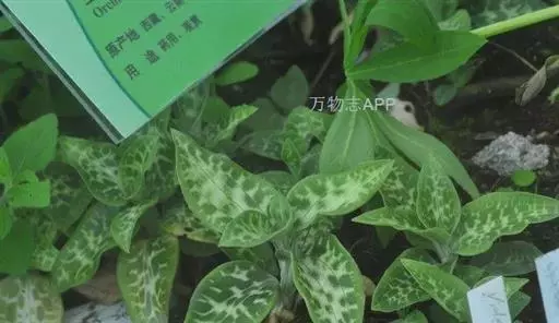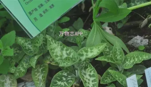 小斑叶兰(学名:Goodyera repens (L.) R. Br.):植株高10-25厘米。根状茎伸长,茎状,匍匐,具节。茎直立,绿色,具5-6枚叶。叶片卵形或卵状椭圆形,上面深绿色具白色斑纹,背面淡绿色。花茎直立或近直立,总状花序具几朵至10余朵、密生、多少偏向一侧的花;花小,白色或带绿色或带粉红色,半张开;花瓣斜匙形,无毛,长3-4毫米,宽1-1.5毫米,先端钝,具1脉;唇瓣卵形。花期7-8月。