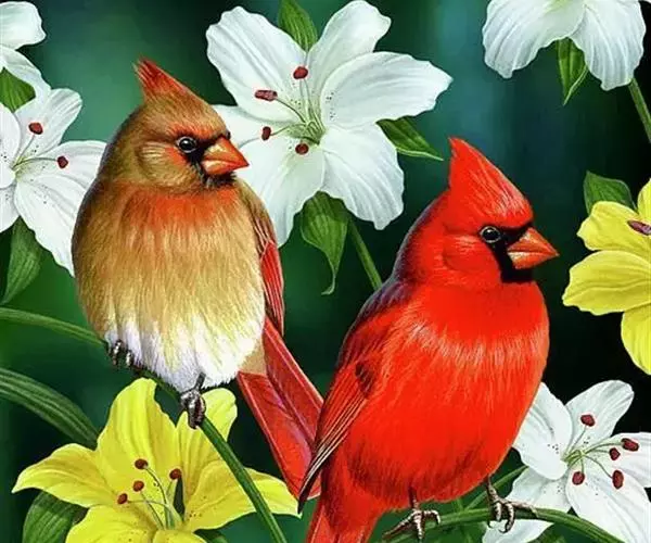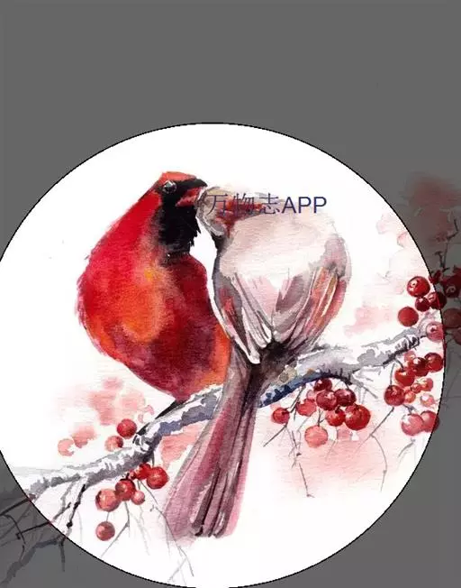 北美红雀(学名:Cardinalis cardinalis):体型中等,体长24厘米,翼展25-31厘米,体重 42-48克。雄鸟呈鲜红色,面部呈黑色,一直伸延至上胸。背部及双翼最为沉色。雌鸟呈灰棕色,双翼、冠及尾羽上有红彩。 雌雄异形,均有羽冠。北美红雀的学名意义是天主教会的枢机,因枢机有着明显的红袍及帽子。皇冠般傲立的穗状头冠和一身烈焰般的羽毛异常醒目,是世界上最美丽耀眼的鸟类之一。