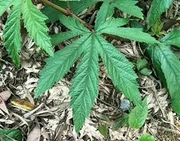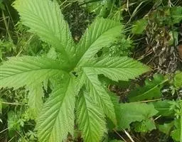 叶片卵形或椭圆卵形,长5-11厘米,宽3.5-6厘米,先端渐尖稀急尖,基部宽楔形,稀近圆形,边缘有尖锐锯齿,齿尖有刺芒,微向内合拢,嫩时紫红绿色,两面均有绒毛,不久脱落,老叶无毛;叶柄长2.5-7厘米,嫩时密被绒毛,不久脱落;托叶膜质,线形至线状披针形,先端渐尖,边缘具有腺齿,长1-1.3厘米,外面有稀疏柔毛,内面较密,早落。