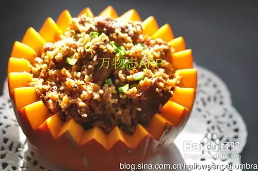 1. 将南瓜表面切成一个方形切口, 将里面的瓤挖干净,待用。