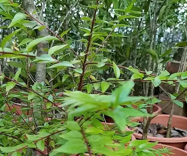 落叶小灌木。高1至3米。茎多分枝,枝细长,小枝红褐色,具白色皮孔和细柔毛,后渐平滑无毛。 顶芽不明显,被开展的托叶包裹。 单叶对生,近无柄,叶片纸质,卵状披针形或卵状椭圆形,长3至4厘米,宽1至2厘米,上面近无毛,或仅在中脉上具疏短毛,下面沿脉及脉腋间具疏毛,羽状脉。侧脉5至6对,纤细,在叶下面凸出,叶先端渐尖,基部模形或圆形,全缘或微波状, 被稀疏或稠密短柔毛, 干后边缘反卷。托叶2深裂,按针形,长约2毫米,外翻, 小,早落。
