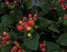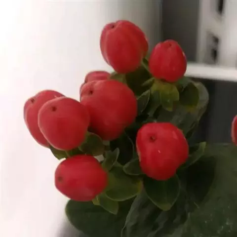 红果金丝桃,园艺栽培品种 ,属于被子植物门双子叶植物纲山茶目藤黄科金丝桃属。学名:Hypericum × inodorum ‘Excellent Flair’