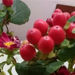 此外,红果金丝桃在作为切花在插花中也有运用,尤其是红果金丝桃与一枝黄花的搭配组合运用广泛。