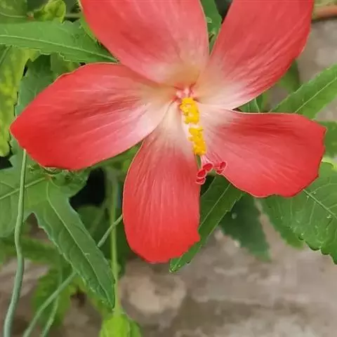 一年生草本,高1-2米;茎圆柱形,疏生散刺。叶掌状3-7裂,直径10-30厘米,裂片阔至狭,边缘具粗齿及凹缺,两面均被疏硬毛;叶柄长7-15厘米,被长硬毛;托叶线形,长7-10毫米,被疏硬毛。