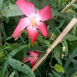 咖啡黄葵 Moench)亦称黄秋葵,是锦葵科一年生草本植物。茎圆柱形,疏生散刺。叶掌状,裂片阔至狭,…
