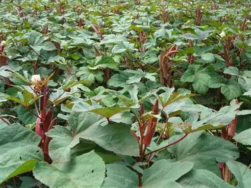 咖啡黄葵对土壤适应性较广,不择地力,但以土层深厚、疏松肥沃、排水良好的壤土或砂壤土较宜。肥料在生长前期以氮为主,中后期需磷钾肥较多。但氮肥过多,植株易徒长,开花结果延迟,坐果节位升高;氮肥不足,植株生长不良而影响开花坐果。