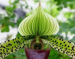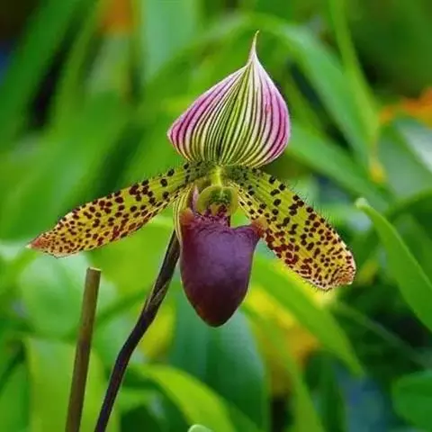 兜兰花比较雅致,色彩比较庄重,色及带有不规则斑点或条纹。花瓣较厚,花朵开放期比较长。属观赏类花草。