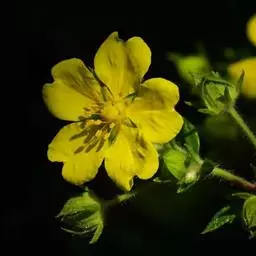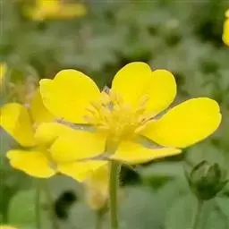 聚伞花序有花数朵至多朵,疏散,花梗长1-2.5厘米,外被绵毛;花直径1-2厘米;萼片三角状卵形,副萼片披针形,比萼片短.,外面被白色绵毛;花瓣黄色,倒卵形,顶端微凹或圆钝,比萼片长;花柱近顶生,基部具乳头状膨大,柱头稍微扩大。瘦果近肾形,宽约1毫米,光滑。花果期5-9月。