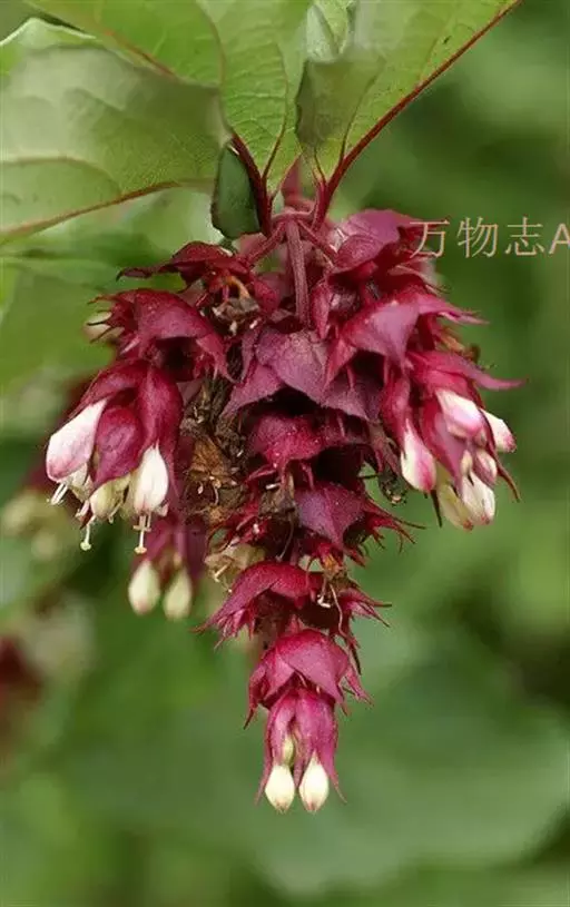 鬼吹箫(Leycesteria formosa),其他名称有开花肉豆蔻,奶奶的卷发,雉浆果,忍冬科植物,落叶灌木或半灌木。小枝中空。单叶对生。穗状花序,具叶状苞片,每轮具花2~6;萼齿5,花冠漏斗状,裂片5,整齐;雄蕊5;子房5~8(10)室。浆果,萼齿宿存。种子小,多数。 约8种,分布于喜马拉雅地区。