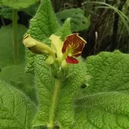 灌木,高1-2 (-3) 米,全体常被或疏或密的暗红色短腺毛;小枝、叶柄、花序梗、苞片和萼齿均被弯伏短柔毛。叶纸质,卵状披针形、卵状矩圆形至卵形,长 (4-) 6-12 (-13) 厘米,先端长尾尖、渐尖或短尖,基部圆形至近心形或阔楔形,边常全缘,有时波状或具疏齿或有不整齐浅缺刻,上面被短糙毛,中脉毛较密,下面疏生弯伏短柔毛或近无毛;叶柄长5-12 (-15) 毫米。