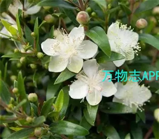香桃木(学名:Myrtus communis Linn.)桃金娘科常绿灌木,或有时为高达5米的小乔木;枝四棱,幼嫩部分稍被腺毛;叶芳香,革质,叶片卵形至披针形,顶端渐尖,基部楔形。花芳香,中等大,被腺毛,花梗细长,花瓣5片,白色或淡红色,较大,倒卵形。浆果圆形或椭圆形,大如豌豆,蓝黑色或白色,顶部有宿萼。