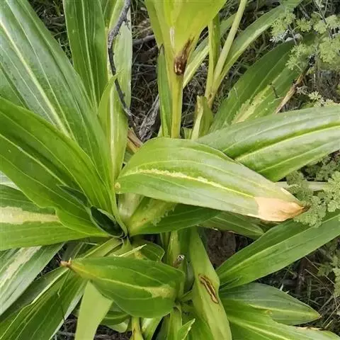 多年生草本,高10-25厘米,全株光滑无毛,基部被枯存的纤维状叶鞘包裹。须根多条,向左扭结成一个圆锥形的根。枝多数丛生,斜升,黄绿色或紫红色,近圆形,光滑。莲座丛叶披针形或线状椭圆形。长5-15厘米,宽0.8-1.4厘米,先端渐尖,基部渐狭,边缘粗糙,叶脉3-5条,在两面均明显,并在下面突起,叶柄宽,扁平,膜质,长2-4厘米,包被于枯存的纤维状叶鞘中。茎生叶少数,线状披针形至线形,长2-5厘米,宽0.2-0.4厘米,先端渐尖,基部渐狭,边缘粗糙,叶脉1-3条,在两面均明显,中脉在下面突起,叶柄宽,长0.5-10厘米,愈向茎上部叶愈小,柄愈短。