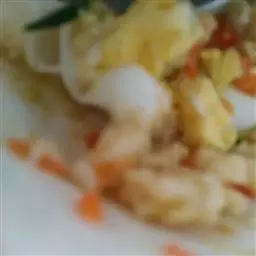 4、热锅,7分热的油,入拌过芡粉的虾仁迅速滑炒,虾仁变色、弯曲后就盛出来;