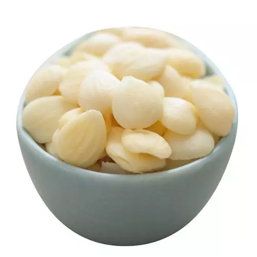 杏仁中含有20%的蛋白质,不含淀粉,磨碎、加压后,榨出的油脂为淡黄色,虽然没有香味,但具有软化皮肤的功效。