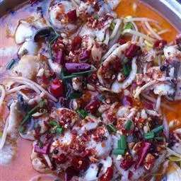 烧热锅,放入猪油25 g,把切碎的小葱头25 g下锅煸至金黄色时,再加入料酒、顶汤250 g、精盐、茄汁25g、黄姜粉5 g、椰子汁40g玉果粉3g、鸡油25 g、黄油5g滚烧5分钟,待汤滚至金黄色时,用纱布滤清倒入净锅内。然后将蒸酥的旗参滗干水,放入锅内,加入味精,用文火滚烧三至四分钟,再用水淀粉40 g勾芡,加入牛奶50 g,搅匀装盆,撒上炸杏仁末10 g,一盆杏黄色的扒旗参制成了。