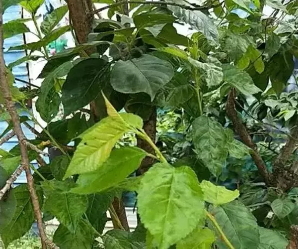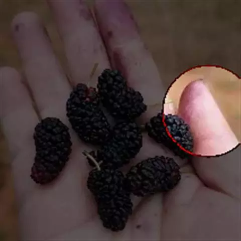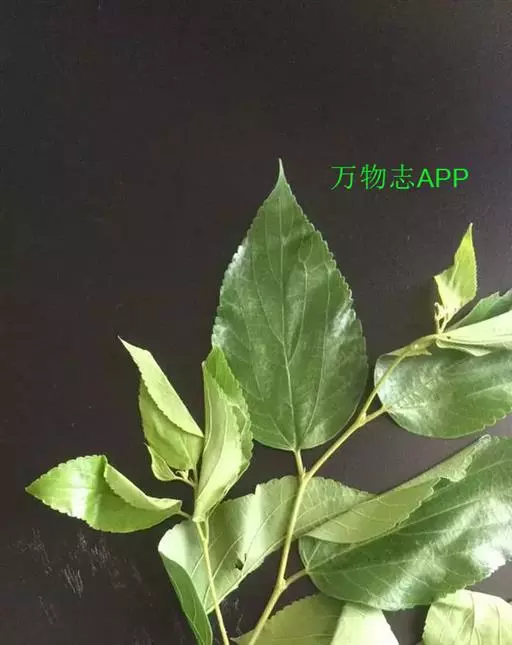 该变种和桑的区别在于叶大而厚,叶长可达30厘米,表面泡状皱缩;聚花果圆筒状,长1.5-2厘米,成熟时白绿色或紫黑色。