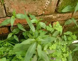 黄顶菊为一年生草本植物。植株高低差异很大,株高20-100厘米,条件适应的地段株高可达180-250厘米,最高的可达到3米左右。茎直立、紫色,茎上带短绒毛。叶子交互对生,长椭园形,长6-18厘米、宽2.5-4厘米,叶边缘有稀疏而整齐的锯齿,基部生3条平行叶脉。