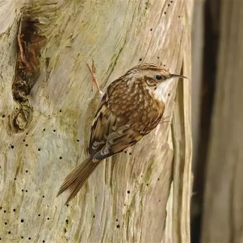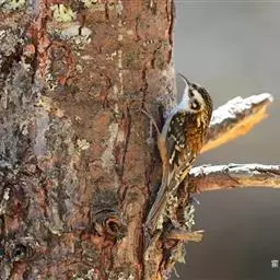 旋木雀是旋木雀科旋木雀属的一种动物。小型鸟类,体长12~15厘米,平均重10克。嘴长而下曲,…