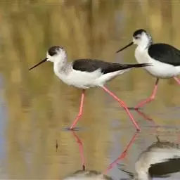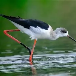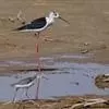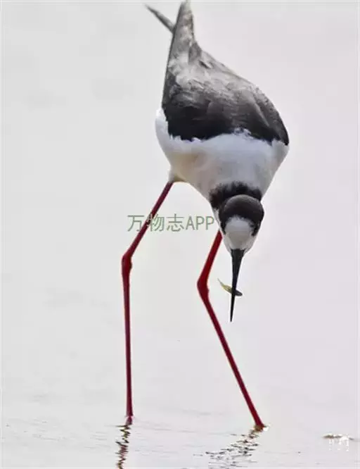 黑翅长脚鹬(学名:Himantopus himantopus),是反嘴鹬科长脚鹬属的一种鸟类,共有4个亚种。是一种修长的黑白色涉禽。体长约37厘米。特征为细长的嘴黑色,两翼黑,长长的腿红色,体羽白。颈背具黑色斑块。幼鸟褐色较浓,头顶及颈背沾灰。栖息于开阔平原草地中的湖泊、浅水塘和沼泽地带。非繁殖期也出现于河流浅滩、水稻田、鱼塘和海岸附近之淡水或盐水水塘和沼泽地带。常单独、成对或成小群在浅水中或沼泽地上活动,主要以软体动物、虾、甲壳类、环节动物、昆虫、昆虫幼虫,以及小鱼和蝌蚪等动物性食物为食。繁殖期为5-7月,每窝产卵4枚。繁殖于欧洲东南部、塔吉克斯坦和中亚国家,越冬于非洲和东南亚,偶尔到日本。
