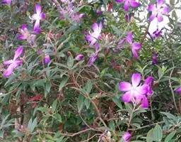 银毛野牡丹,野牡丹科蒂牡花属常绿小灌木。花枝长,花多而密,花色独特艳丽,叶质感较好,引人注目。耐修剪,…