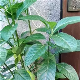 一年生或多年生草本,高20-100厘米。根垂直,多少木质,分枝,具纤维状根。茎直立,通常上部分枝,或稀自 夜香牛 基部分枝而呈铺散状,具条纹,被灰色贴生短柔毛,具腺。下部和中部叶具柄,菱状卵形,菱状长圆形或卵形,长3-6.5厘米,宽1.5-3厘米,顶端尖或稍钝,基部楔状狭成具翅的柄,边缘有具小尖的疏锯齿,或波状,侧脉3-4对,上面绿色,被疏短毛,下面特别沿脉被灰白色或淡黄色短柔毛,两面均有腺点;叶柄长10-20毫米;上部叶渐尖,狭长圆状披针形或线形,具短柄或近无柄。