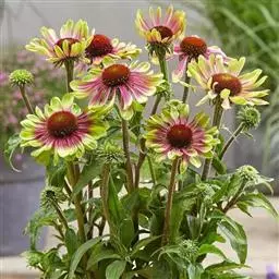 头状花序多数,或稀少数,径6-8毫米,具19-23个花,在茎枝端排列成伞房状圆锥花序;花序梗细长5-15毫米,具线形小苞片或无苞片,被密短柔毛;总苞钟状,长4-5毫米,宽6-8毫米;总苞片4层,绿色或有时变紫色,背面被短柔毛和腺,外层线形,长1.5-2毫米,顶端渐尖,中层线形,内层线状披针形,顶端刺状尖,具1条脉或有时上部具多少明显3脉;花托平,具边缘具细齿的窝孔;花淡红紫色,花冠管状,长5-6毫米被疏短微毛,具腺,上部稍扩大,裂片线状披针形,顶端外面被短微毛及腺。