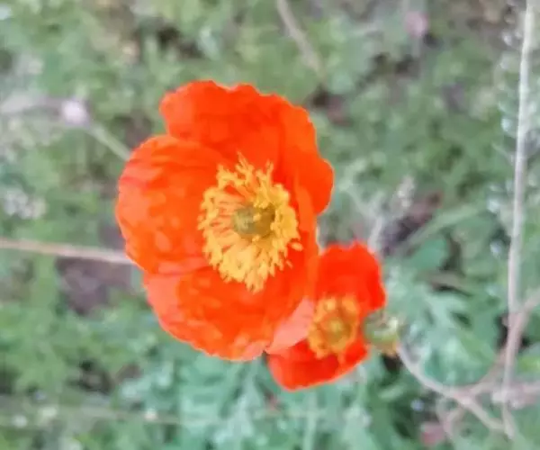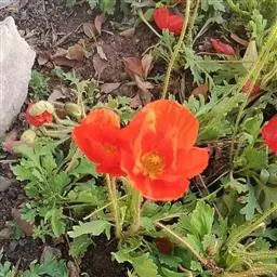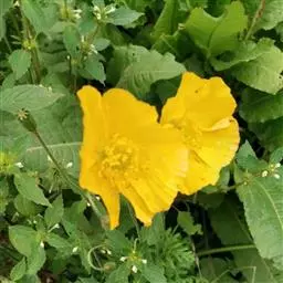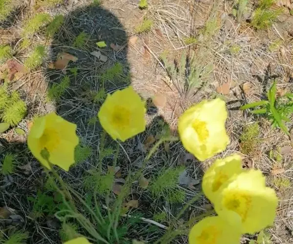 野罂粟(学名:Papaver nudicaule L.):多年生草本。株高20-50厘米,具乳汁,全体被粗毛。叶生基生,具长柄;叶片轮廓卵形或长卵形、狭卵形或披针形,先端钝圆,两面疏生微硬毛。花单独顶生。萼片2,广卵形,被棕灰色硬毛,花开后脱落。花瓣4,桔黄色,倒卵形至宽倒卵形,具微波状缺刻。雄蕊多数,花丝丝状;子房具棱,柱头5-9裂。蒴果,狭倒卵形,密被视而长的硬毛,顶孔开裂。种子细小,多数。花期6-7月,果期8月。