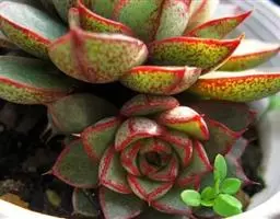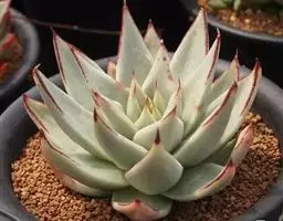 大和锦是景天科拟石莲花属的多肉植物。肉质叶排成紧密的莲座状,广卵形至散三角卵形,背面突起呈龙骨状,…