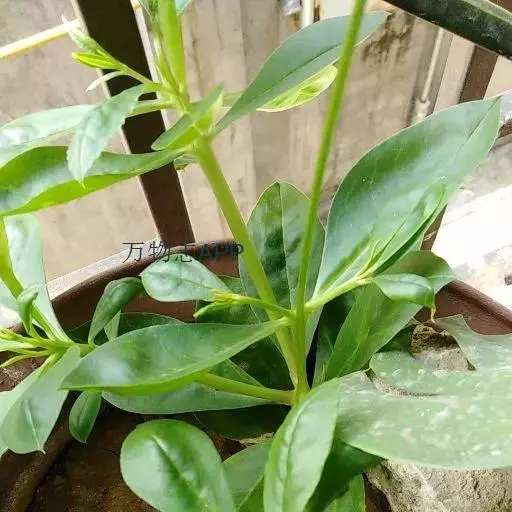 叶互生或近对生,具短柄或近无柄,叶片稍肉质,倒卵形或倒卵状长椭圆形,长5-10厘米,宽2.5-5厘米,顶端急尖,有时微凹,具短尖头,基部狭楔形,全缘。