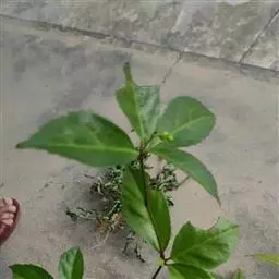 在5月底、6月初当气温达20-30℃时,选择健壮的枝条,剪成长6-8cm、具两对叶的插条,保湿备插。采用72目穴盘,装满蛭石或栽培基质,浇足底水,插入插穗,深为插穗的1/3、或斜插2/3,适当覆盖遮光,水分不宜过多。当插穗成活后20-25d,新发出的嫩梢有10cm左右时即可移植大田。