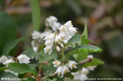 溲疏 6)异色溲疏(Deutzia discolor Hemsl)又称白花溲疏。灌木,高1-3米;小枝疏生星状毛。叶对生,有短柄;叶片卵状矩圆形或披针形,长2.5-9.5厘米,宽1-3厘米,基部宽楔形或楔形,先端渐尖或急尖,边缘有小锯齿,上面疏生星状毛(具4-5条辐射线),下面白色,密生紧贴的星状毛(有7-12条辐射线)。花序伞房状;萼筒密生星状毛,长2.5-3毫米,裂片5,披针形,长3-5毫米;花瓣5,白色,狭倒卵形,长0.9-1.2厘米;雄蕊10,所有花丝上部都有2长齿;子房下位,花柱3-4.蒴果近球形,直径5-6毫米。 分布于四川(东部)、湖北、陕西(南部)、河南(西南部)、云南。生于海拔1300-1900米山地林边。