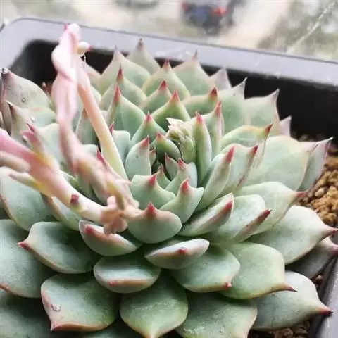 女雏是景天科石莲花属的多肉植物。特征是小巧的株形和橙粉色叶缘。极易生侧芽,…