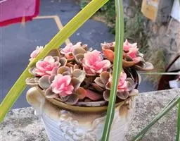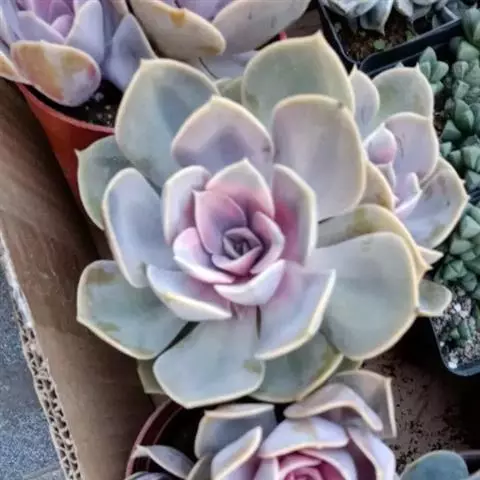 紫珍珠是景天科石莲花属的多年生肉质草本植物。植株中小型;叶片肉质,匙形,呈莲座状紧密排列;叶片粉紫色,…