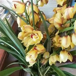 广东石斛:茎直立或斜立,细圆柱形,不分枝,具少数至多数节。叶革质,二列、数枚,互生于茎的上部,狭长…