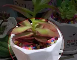 叶子表面宽厚,富肉质感且带有磨纱质感,看像石头质地;开红色小花,生于植株顶部,倒伞形密生,形状像花…