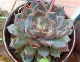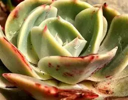 小红衣是景天科、拟石莲花属的一种多肉植物。叶片匙形,扁平细长,叶表具白粉,有明显的半透明边缘,…