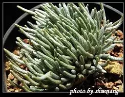 薄雪万年草别名矶小松,景天科景天属多年生草本植物,其细小的蓝绿色棒状叶片环绕生长于茎端,…