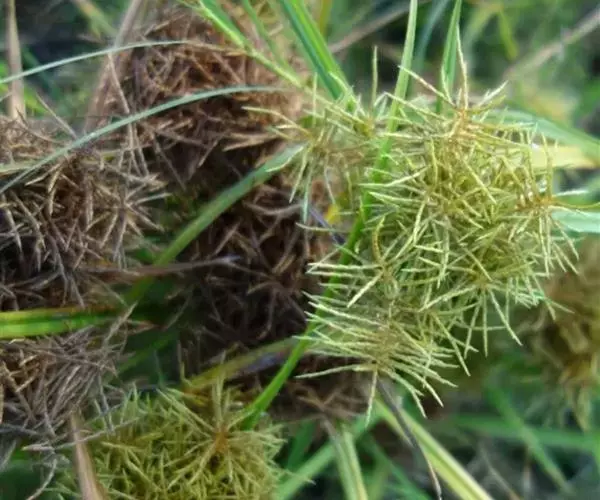 断节莎,根状茎短缩,具许多较硬的须根。秆粗壮,高30-120厘米,三稜形,或多或少具纵槽,平滑,下部具叶,基部膨大呈块茎。产于我国台湾,但未见到标本;也分布于全世界热带地区。