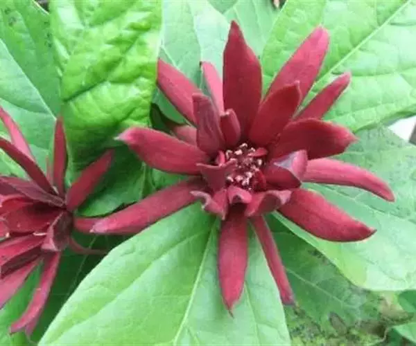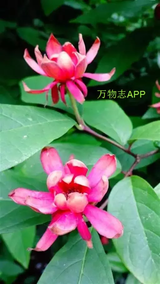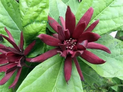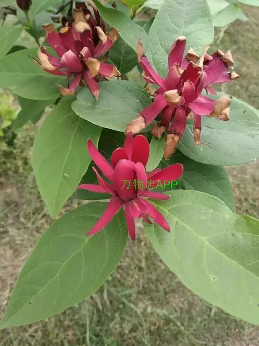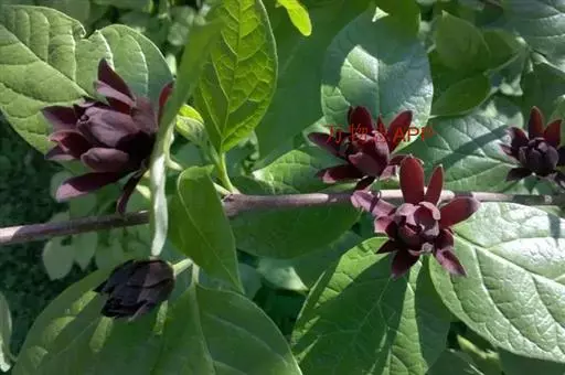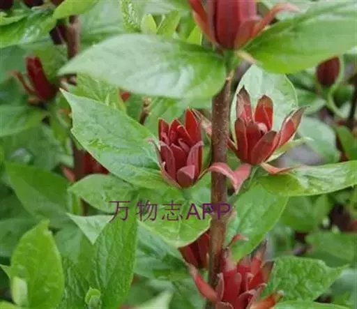 光叶红(Calycanthusfloridusvar.glaucus(Willd.) Torr. et A.Gray):与原变种的不同在于本变种的叶、叶柄及枝条均无毛或几无毛。花期6月。原产于北美。栽培于中国江西庐山植物园。观赏植物。