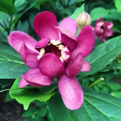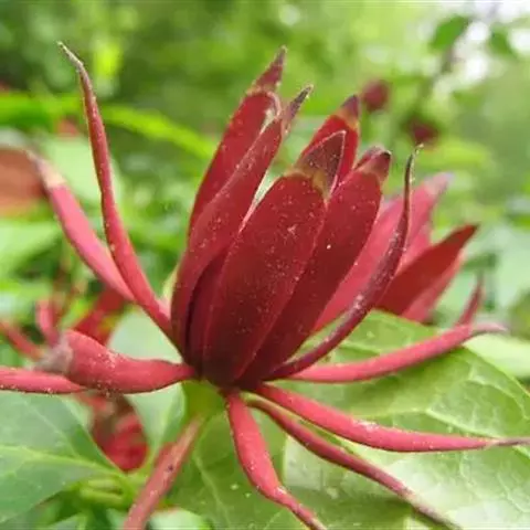 美国蜡梅(学名:Calycanthus floridus L.)是蜡梅科夏蜡梅属植物,高1-4米;幼枝、叶两面和叶柄均密被短柔毛;木材有香气。叶椭圆形、宽楔圆形、长圆形或卵圆形,长5-15厘米,宽2-6厘米。花红褐色,直径4-7厘米,有香气。果托长圆状圆筒形至梨形,椭圆状或圆球状,内有瘦果5-35个。花期5-7月。