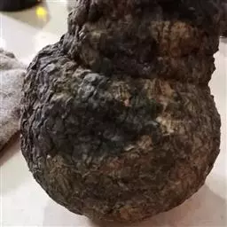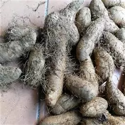 块茎形状不规则,通常为长卵形,外皮有多数细长须根,断面刚切开时白色,不久变棕色。