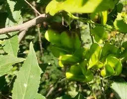 蒴果三棱状长椭圆形,薄革质,长2-2.5厘米,宽1-1.3厘米,成熟时黑色,疏生短柔毛;种子通常两两着生于每室中轴顶部,种翅向蒴果基部延伸。