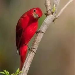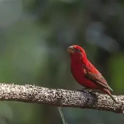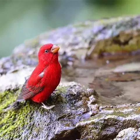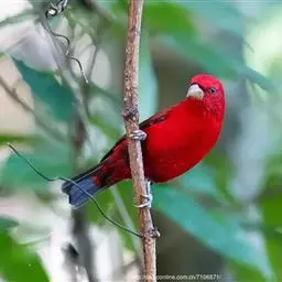 酒红朱雀小型鸟类,体长13~15厘米。雄鸟通体深红色,头部深朱红或棕红色,下背和腰玫瑰红色,…