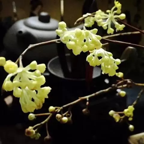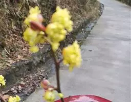 伞形花序腋生,常2-3个簇生于短枝上,短枝长1-2毫米,花序梗长6毫米,有白色短柔毛,每一花序有花4-6朵,先叶开放或与叶同时开放;花被裂片6,黄色,宽倒卵形,能育雄蕊9,花丝有柔毛,第3轮基部腺体盾状心形,黄色;退化雌蕊无。果球形,直径约5毫米,成熟时蓝黑色;果梗长5-6毫米,有稀疏短柔毛。花期3-4月,果期9-10月。