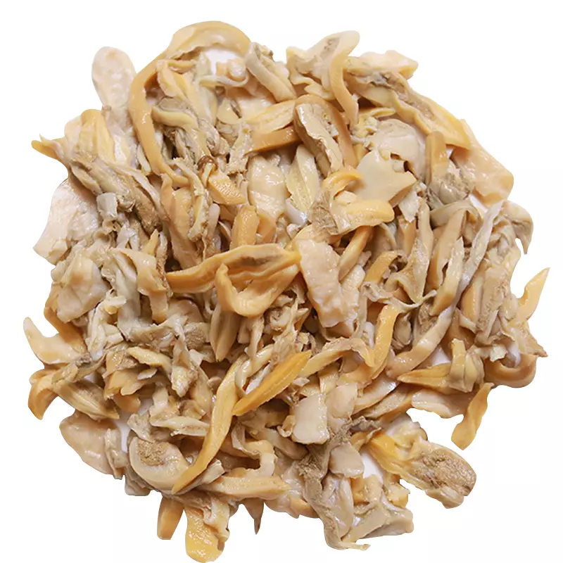 第三步:剔肉。首先要摘除灰黄色的鳃和背后的泥肠。去腮是自然,没有什么要说的。那一大块青黄色的东西是完全可以吃下去的,不必去除。肠子里的青色污浊应该全部去掉,很多人用挤的方法,其实这样是弄不干净的。因为只能挤出靠近小孔的一些污浊,而整个河蚌里边肠子里的污浊却是挤不掉的。